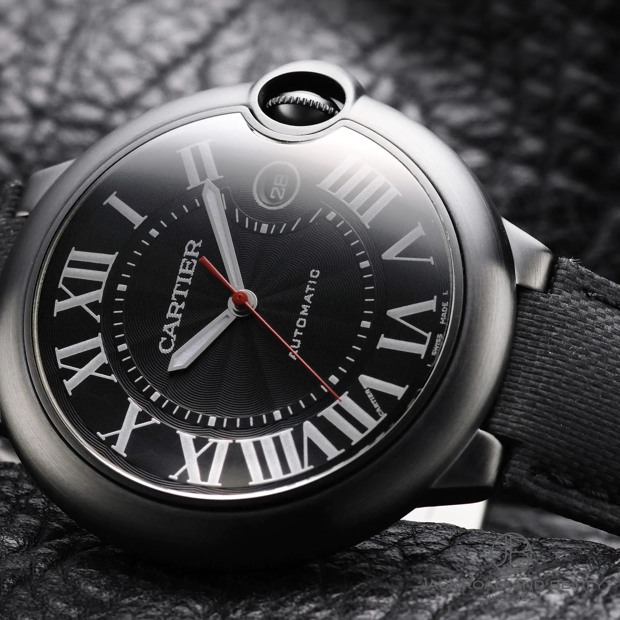 - Black textured dial