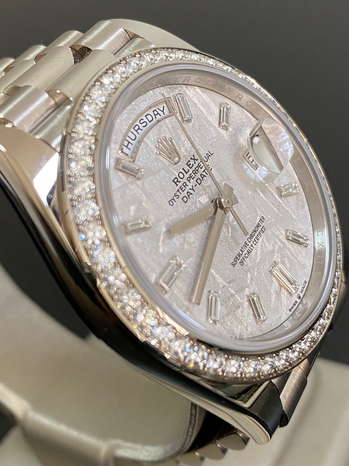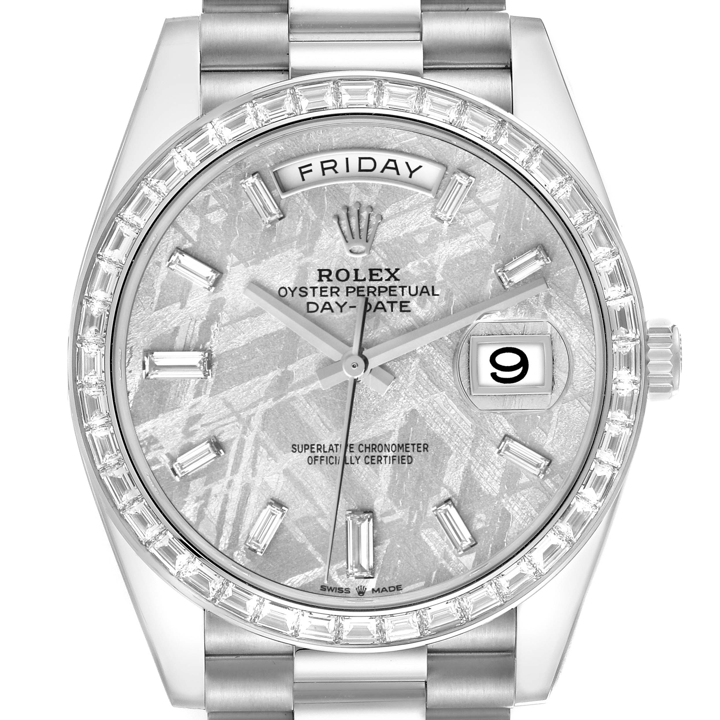 • Rolex Day-Date 40 Platinum Meteorite Diamond Dial Diamond Bezel Men's Watch M228396TBR-0027