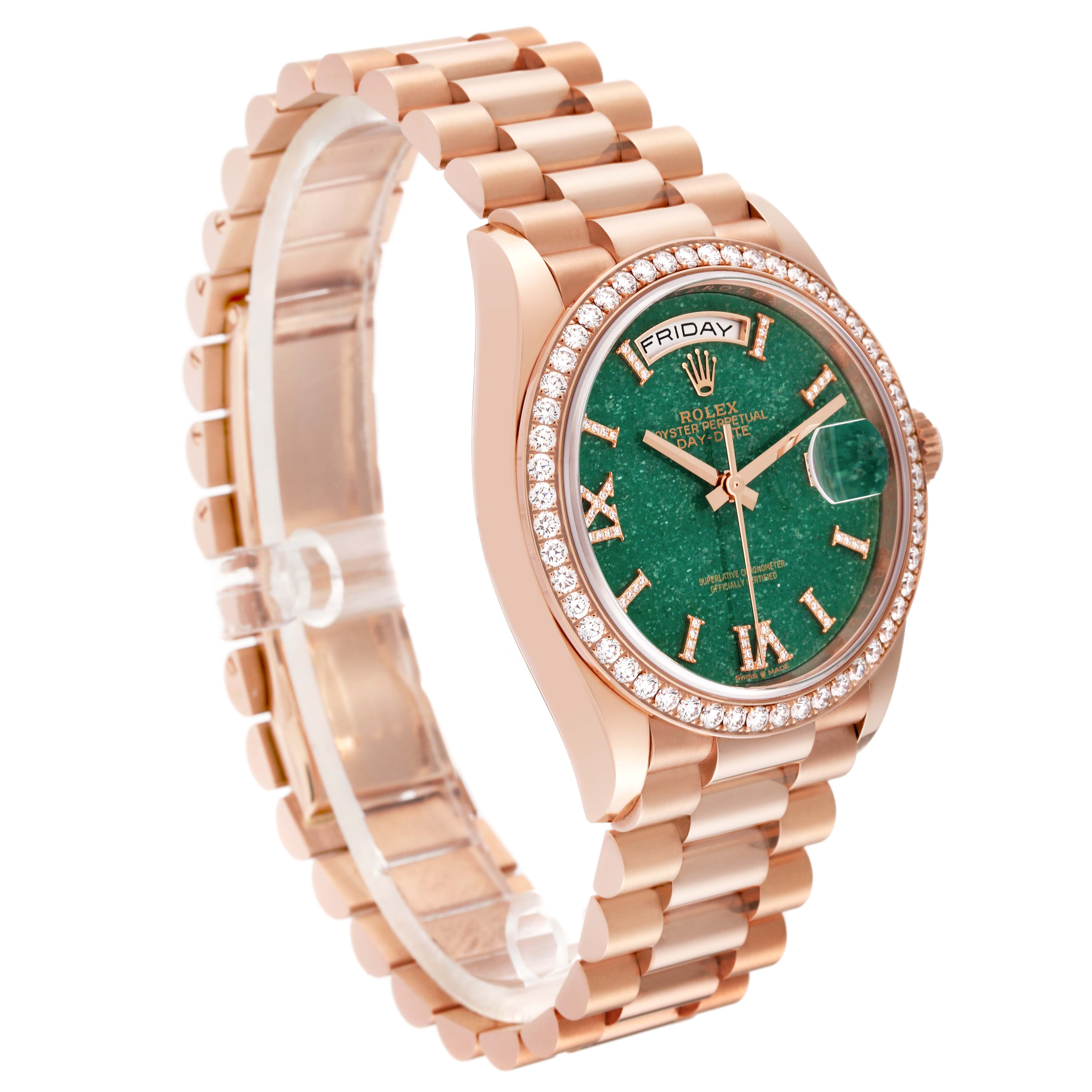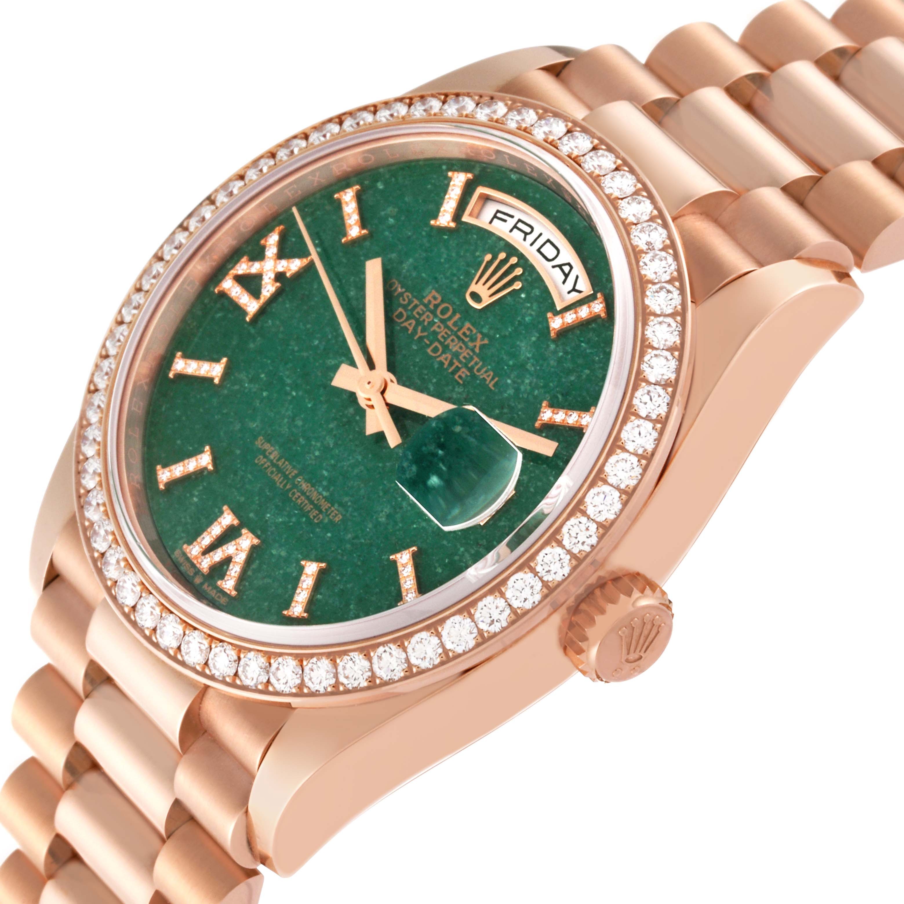 • Rolex Day-Date Rose Gold Green Aventurine Diamond-Set Roman Dial Diamond Bezel Women's Watch M128345RBR-0068