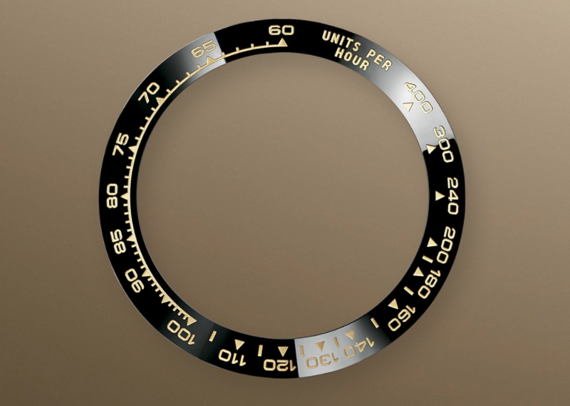 A key part of the model��s identity is the bezel moulded with a tachymetric scale for measuring average speeds of up to 400 miles or kilometres per hour. Blending high technology with sleek aesthetics, the black bezel is reminiscent of the 1965 model that was fitted with a black Plexiglas bezel insert.