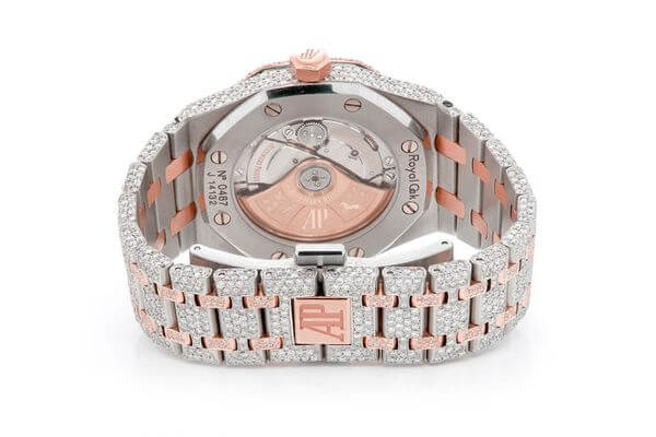This AP iced out watch Royal Oak contains 24.00 ctw of diamonds. This watch has quality requirements by our skilled watchmakers. The packaging for this watch is from Audemars Piguet.