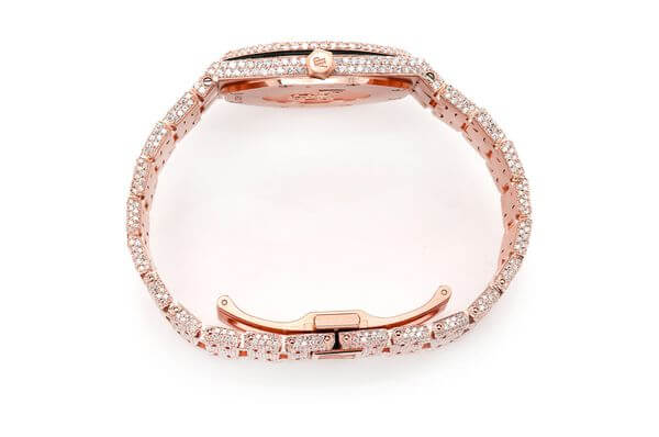AP WATCH ICED OUT ROYAL OAK 41MM STEEL ROSE GOLD BLACK DIAL FULL MOISSANITE