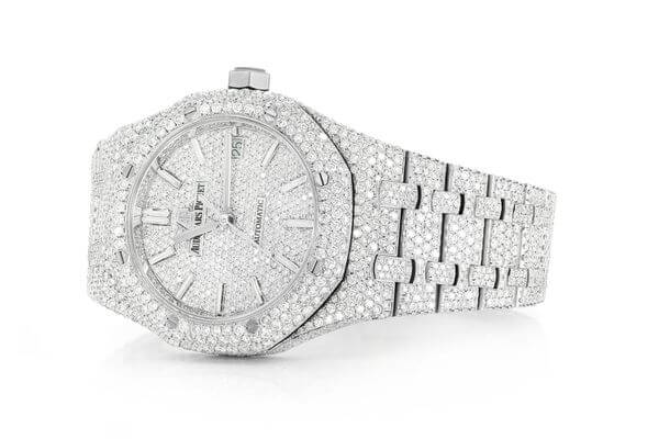 Moissanite AP watch is a popular choice among watch enthusiasts for its stunning beauty and affordable price compared to traditional diamond watches. This stainless steel Audemars Piguet Royal Oak watch weighs 19.00 ctw in Moissanite diamonds. This watch has undergone in-depth maintenance according to Audemars Piguet quality requirements by our professional watchmakers. The packaging for this watch is from Audemars Piguet.