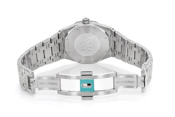 This replica moissanite watch by Audemars Piguet comes with 17.50 ctw of diamonds and is built of stainless steel with one year warranty. Our expert watchmakers have given this watch an extensive polish in keeping with Audemars Piguet quality standards. The Audemars Piguet box is included with this watch.