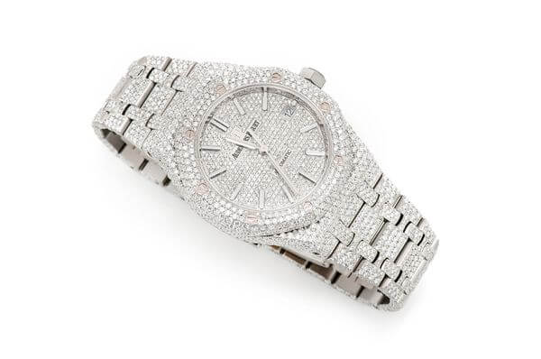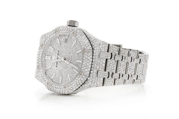 This iced out AP Royal Oak is made of Stainless Steel and has 22.00 ctw of diamonds. Our expert watchmakers have serviced this watch inside and out to Audemars Piguet quality standards. This watch comes with Audemars Piguet box.
