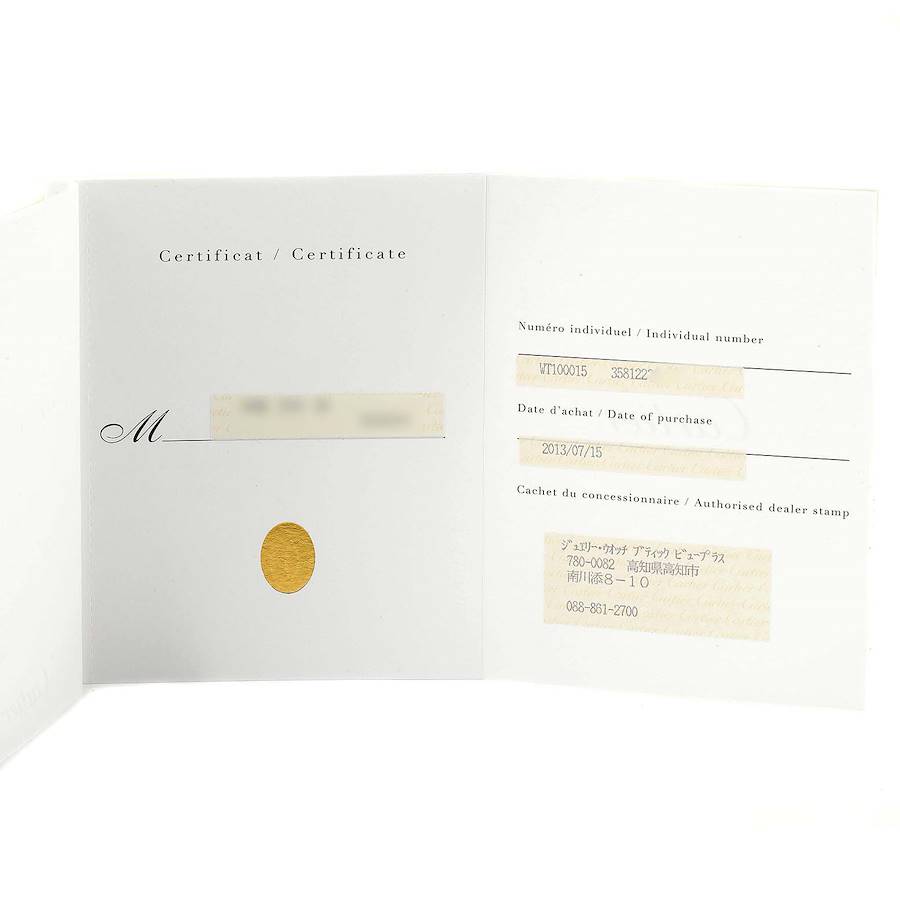 Condition New/Unworn Case Shape Rectangle Case Dimensions 30.2mm X 22.7mm Case Thickness 7.19mm Case Material 18kt White Gold Dial Color Silver Crystal Scratch Resistant Sapphire Bezel Fixed Screw-in Crown No Water Resistance 30m/100ft. Case Back Solid Band Material Alligator/Crocodile Leather Color/Finish Pink Clasp Hidden Folding Clasp Movement Quartz