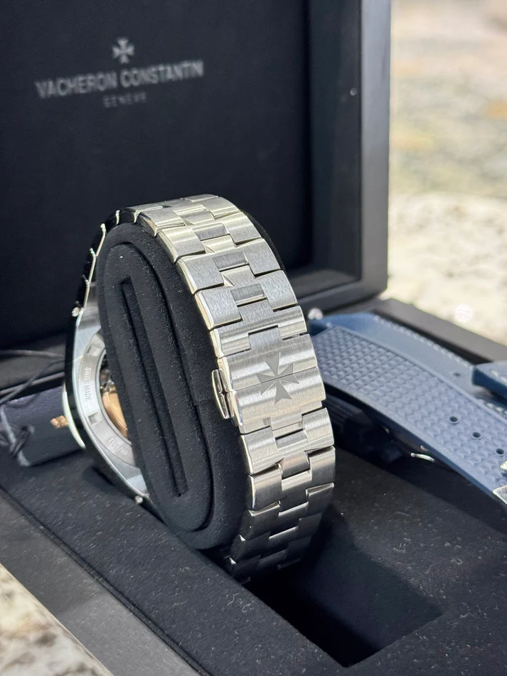 Unworn Vacheron Constantin Overseas Self-Winding 4500V/110A-B128, 41 mm. The watch has Blue Dial. The Case is Stainless steel, Caliber # 5100 w/ 37 Jewels, 60 hours power reserve. The Bracelet is Stainless steel with Deployant buckle. The Water-resistant is up to 150 m. The Watch comes complete with Vacheron Constantin Papers & Box. Covered with Vacheron Constantin 2-Year Warranty.