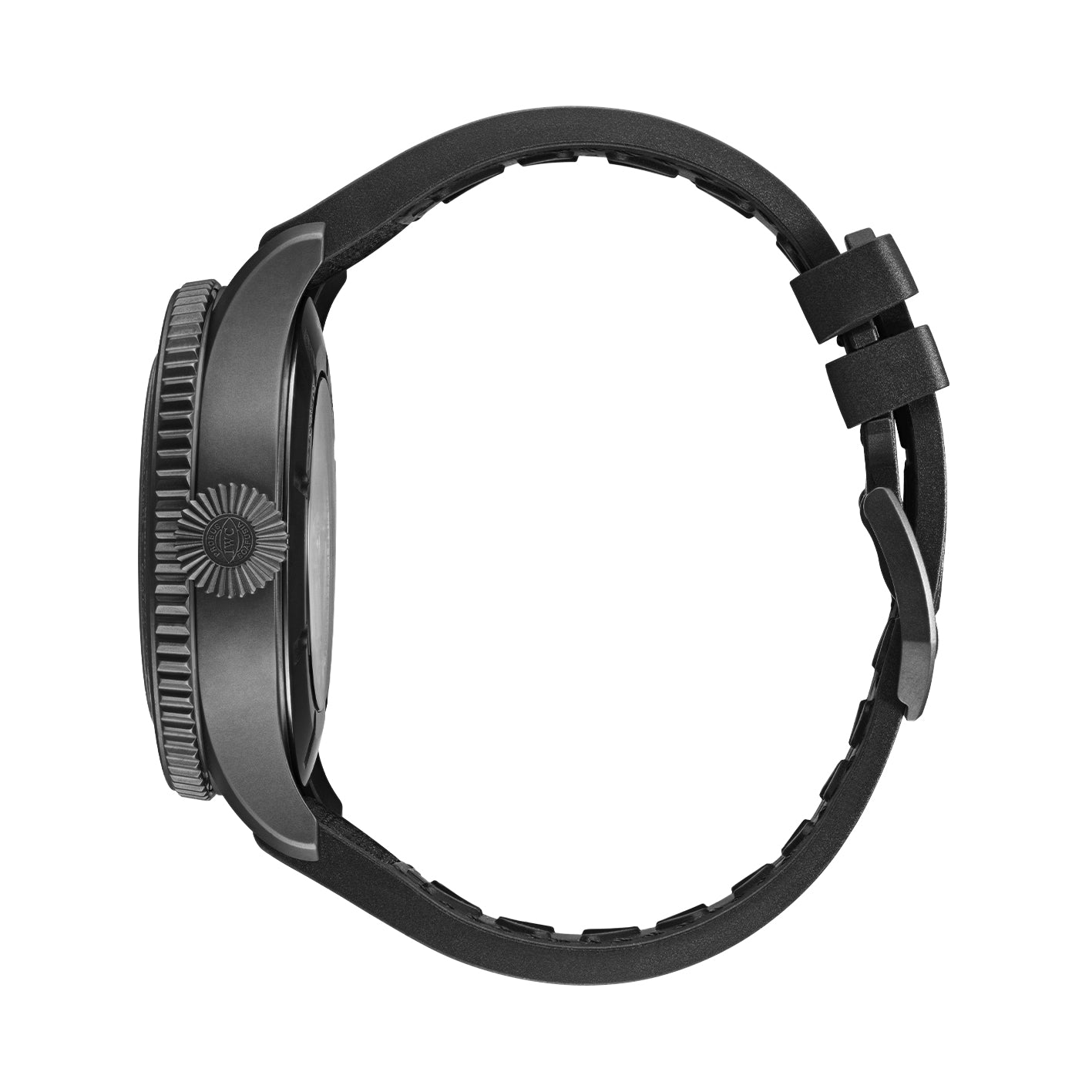 Highlights: The Pilot’s Watch Timezoner TOP GUN Ceratanium (IW395505) is the first TOP GUN model with a timezoner function. Simply by pressing down and rotating the bezel, a different time zone can be set. The hour hand, the integrated 24-hour display and the date will move forwards or backwards in one-hour steps. This also works across the dateline and without losing a single second in the process. The case of this all-black pilot’s watch is manufactured from Ceratanium. Developed by IWC over five years, this performance material combines the unique strengths of titanium and ceramic: It’s light and robust like titanium and, at the same time, similarly hard and scratch-resistant like ceramic.