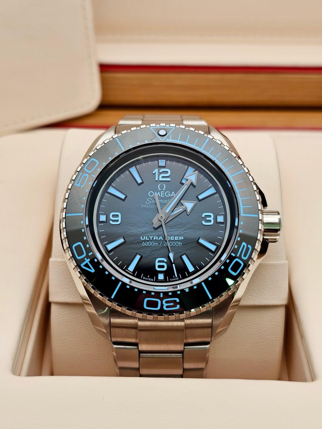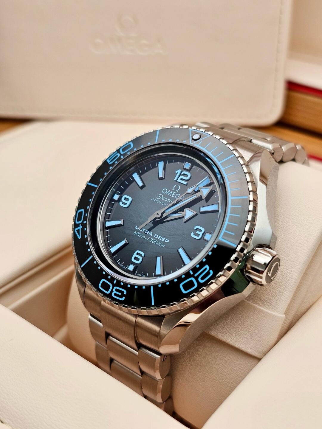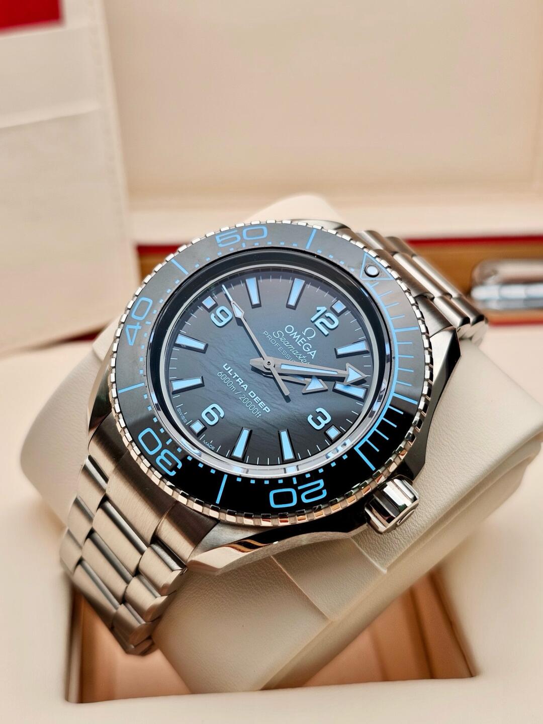 As part of the 2019 "Five Ocean Deep Adventure" plan, the Omega Ultra Deep watch once dived to the deepest part of the Mariana Trench, setting a world record for watch deep diving and creating a milestone legend. Nowadays, Omega continues to keep pace with the times and develop this disruptive professional diving watch into a new watch that can be sold to the public. During the product development process, Omega tested this watch in a real marine environment. It is waterproof to a depth of up to 6,000 meters (20,000 feet) and passed the International Organization for Standardization (ISO) 6425:2018 certification for saturation diving watches. , as well as the Master Chronometer Certification approved by the Swiss Federal Institute of Metrology (METAS).