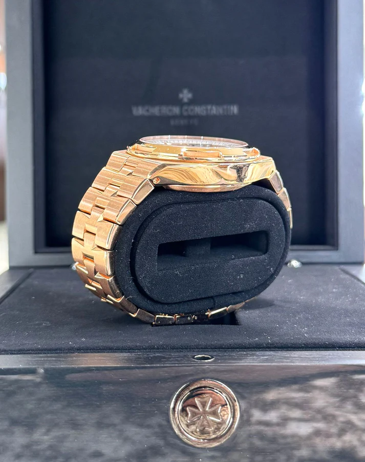 Unworn Vacheron Constantin Overseas Chronograph 5500V/000R-B074, 42.5 mm. The watch has White Dial. The Case is 18K 5N�rose gold, Caliber # 5200 w/ 54 Jewels, 52 hours power reserve. The Bracelet is Mississippiensis alligator with Deployant buckle. The Water-resistant is up to 150 m. The Watch comes complete with Vacheron Constantin Papers & Box. Covered with Vacheron Constantin 2-Year Warranty.